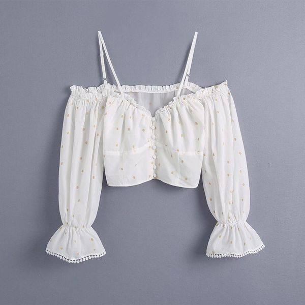 casual dresses sweet women one-shoulder flared sleeves blouse 2021 summer fashion ladies fresh shirt female tulle embroidered top, Black;gray