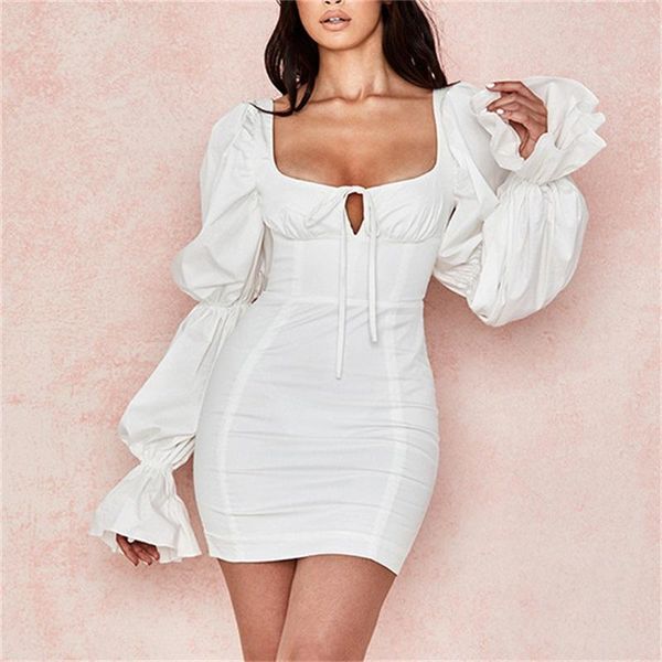 casual dresses white elegant women dress 2021 autumn winter long petal sleeve mini bodycon celebrity evening party vestidos, Black;gray
