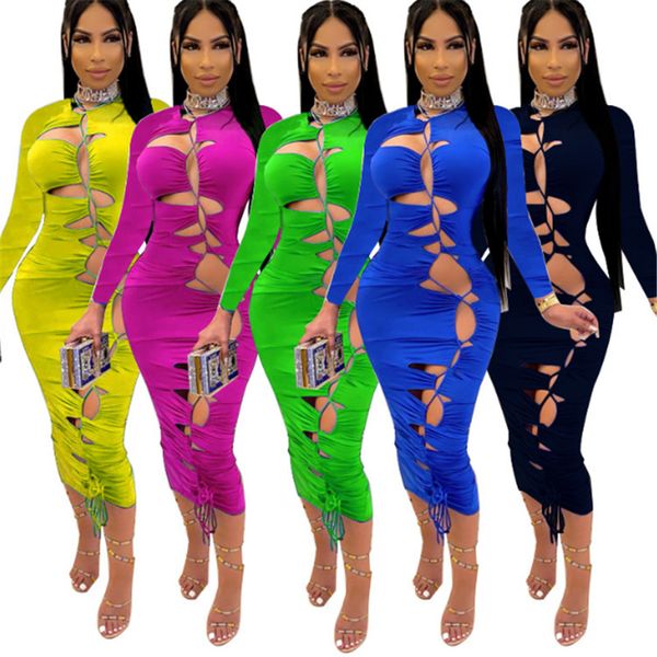 casual dresses wholesale items skinny y2k dress women party club bodycon womens summer long sleeve hollow out clothes m7175 by dhl, Black;gray