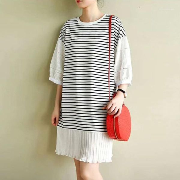 casual dresses women 2021 autumn a-line three-quarters sleeve dress korean hollow patchwork fashion loose dresses1, Black;gray