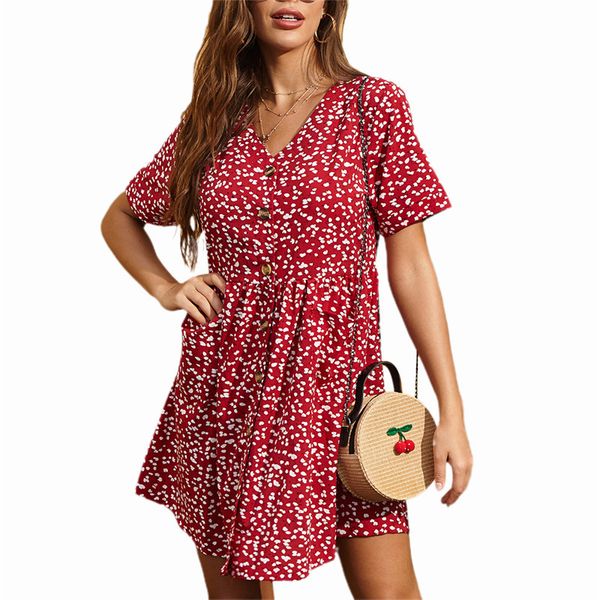 casual dresses women v-neck summer bohemian floral printed loose mini dress female holiday beach sundress femme vestido 0m68, Black;gray