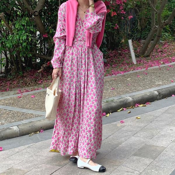 casual dresses yitimuceng floral for women ruched lace up high waist long sleeve pink sundress 2021 summer korean fashion midi dress, Black;gray