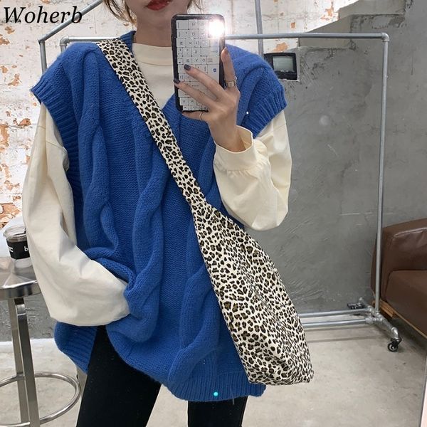 casual loose sweaters vests women v-neck solid sleeveless knitted pullover female streetwear autumn winter waistcoat 210417, White;black
