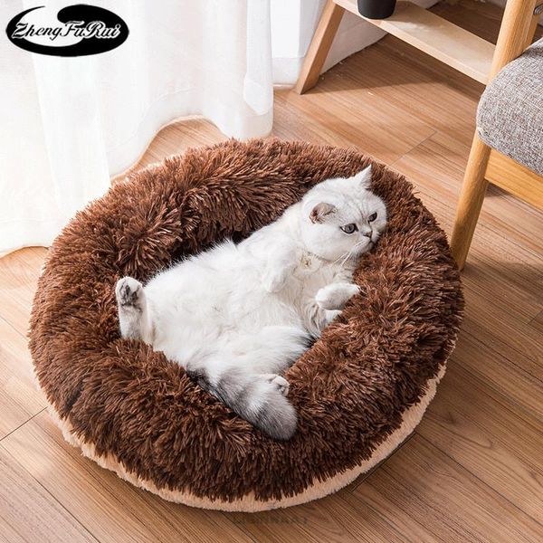 cat beds & furniture lovely round pet bed thickened long plush warm mat deep sleeping soft nest winter for dog supplies
