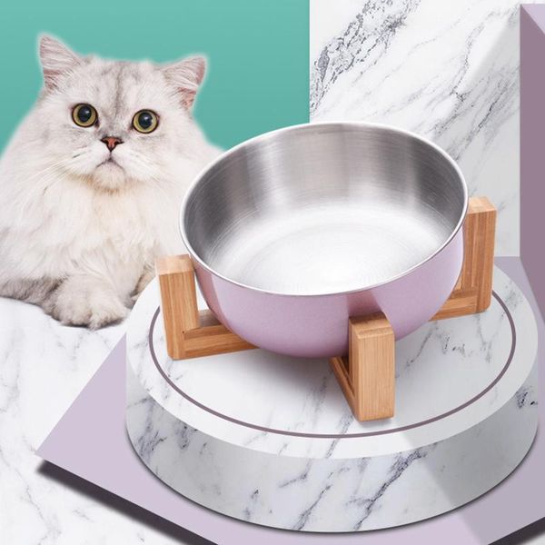 cat bowls & feeders stainless steel dog bowl with wood stand pet food and water dish for dogs feeding feeder puppy supplies