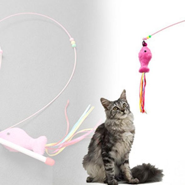cat toys cute toy 92cm / 36 " funny steel wire small plush fish flexible & elastic stick wand feather rod kitten dropship