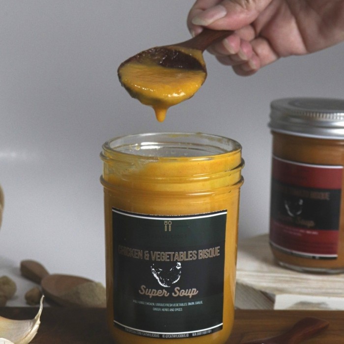 Min order adalah 2 jars sauce atau supersoup untuk semua order setiap pembelian sudah termasuk kemasan styrofoam gratis.