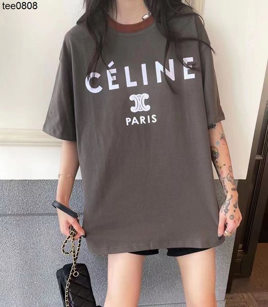 celinss tee family 22 spring summer new loose collar color contrast letter print casual versatile ins trend, White