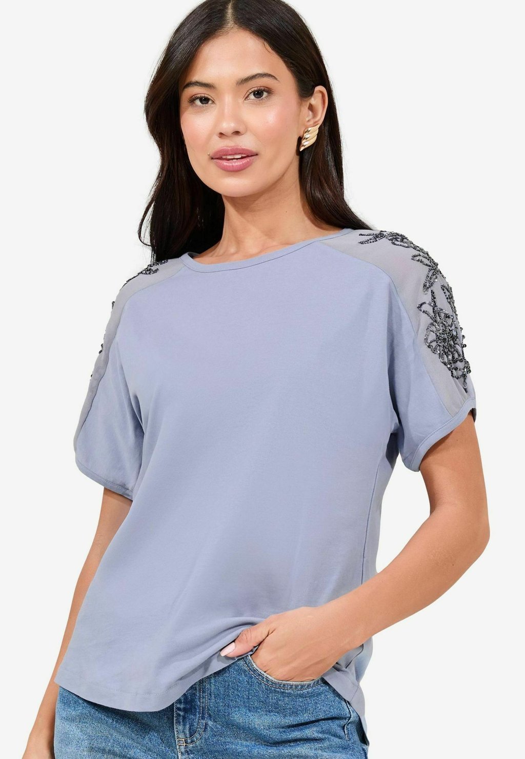 2021 Summer New Women Shirts Harajuku Shirt Vintage Tshirt Blended Appliques Regular Casual V-neck Pullover