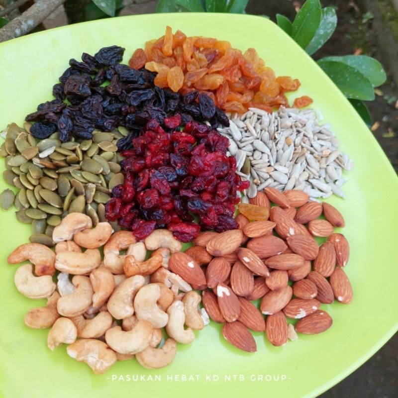 berisi kacang almond, mete, kismis dll
