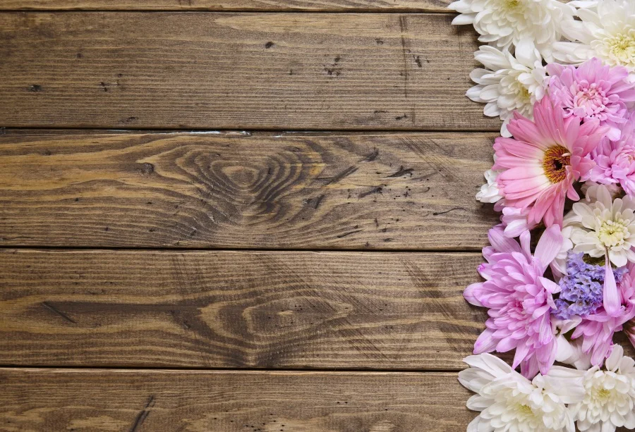 Laeacco Old Wooden Board Blooming Flowers Baby Newborn Photography Background Customized Photographic Backdrop For Photo Studio