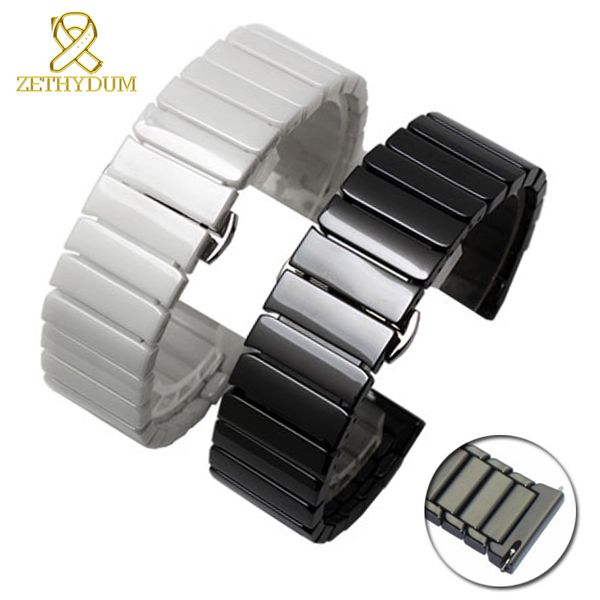 ceramic watch strap 16mm bracelet watchband 20mm 22mm quick release bar wristwatches band 18mm white black watch belt not fade, Slivery;brown