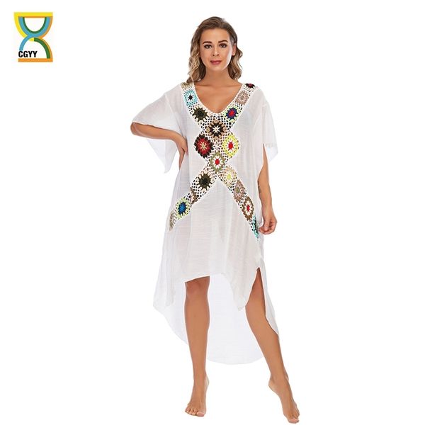 cgyy women beachwear bathing suit swim cape beach cover up dress summer tunic saida praia v neck bikinis swimwear 210629, White;black
