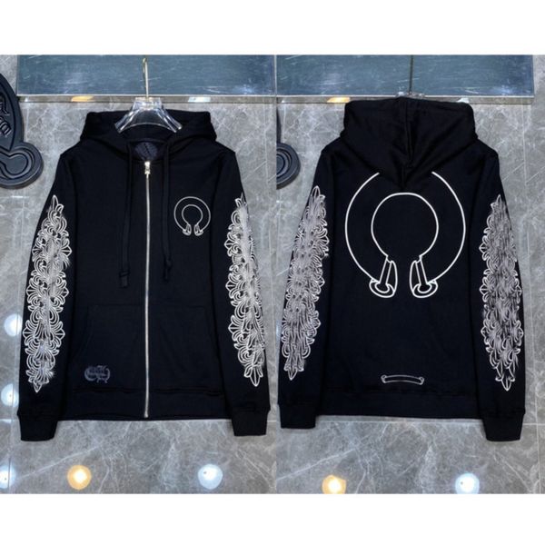 ch brand quality hoodie classic fashion zipper autumn winter luxury sweatshirts designer men sweater horseshoe phantom cross print hooded wo, Black
