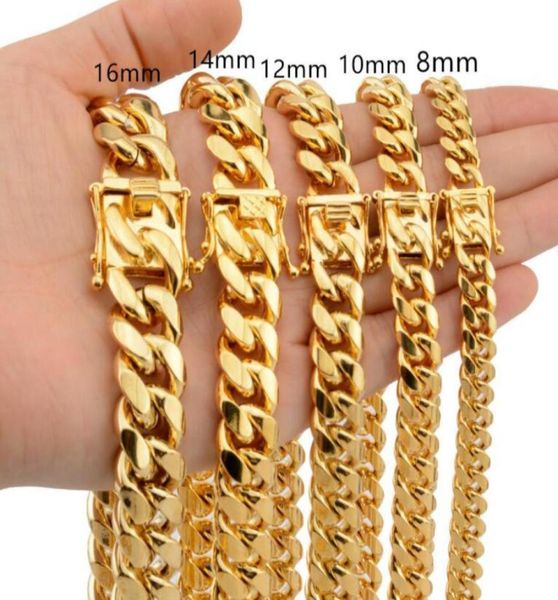 chains 681012141618mm miami cuban chain necklace for men 24 inches gold link curb stainless steel hip hop jewelry3236701, Silver