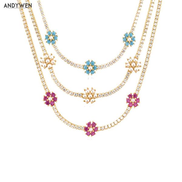 chains andywen 100% 925 sterling silver gold flower rainbow choker necklace 2021 women zircon cz chian luxury party wedding jewelry