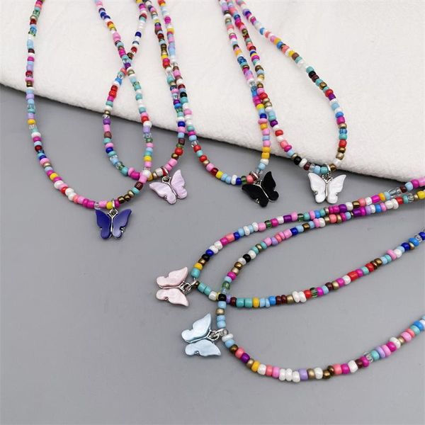 chains bohemian fashion butterfly shape pendant simple trend rice bead beaded necklace girlfriend gift women's accessories, Silver