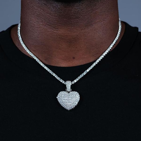 chains can be opened heart-shaped po pendant necklace 5mm cz tennis chain iced zircon cubic zirconia charm hip hop fashion jewelry, Silver
