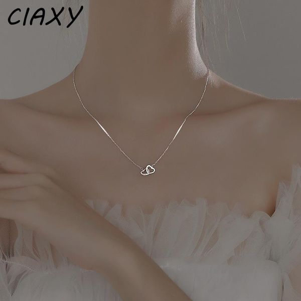 chains ciaxy 925 sterling silver zircon love necklaces for women heart-shaped interlocking clavicle chain choke 2021 jewelry