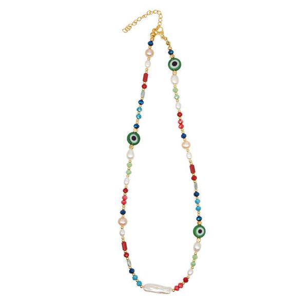 chains colorful crystal beads women necklace fashion evil eye chain natural pearls freshwater female jewelry, Silver