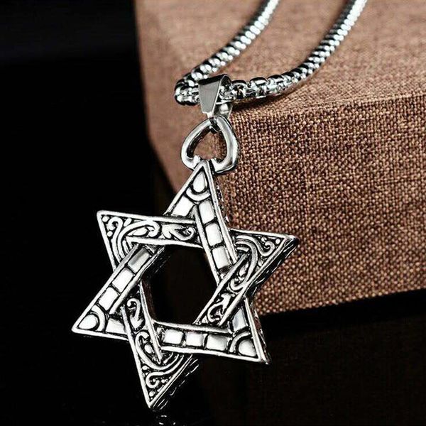 chains ethnic style retro six-pointed star silver pendant men's necklace personality domineering creative trendy jewelry