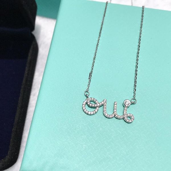 chains high-quality 2021 tif 1:1 shining necklace with stone word luxury jewelry fashion brand gift couples ladies, Silver