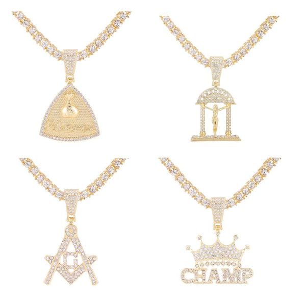 chains iced out crown / money bag pendant necklace choker chain women hip-hop jewelry for men tennis drop, Silver