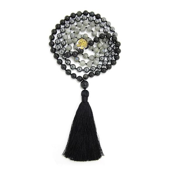 chains labradorite obsidian and hematite 8mm beads 108 mala necklace for mantra meditation birthstone necklacechains, Silver