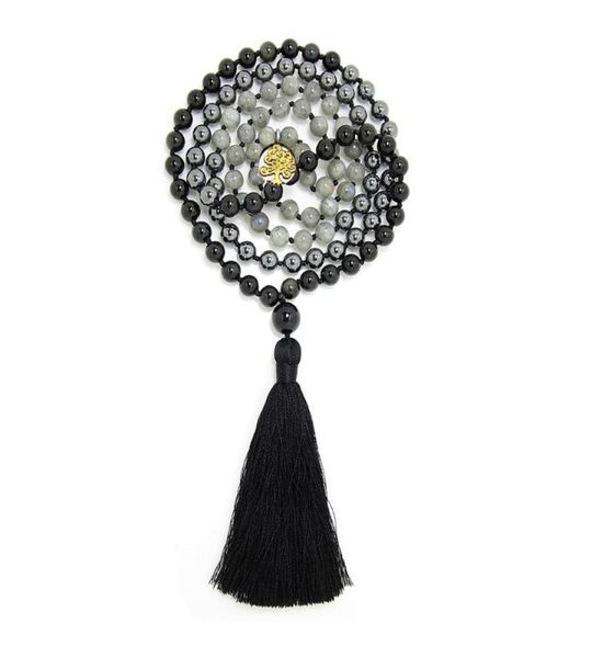 chains labradorite obsidian and hematite 8mm beads 108 mala necklace for mantra meditation birthstone necklacechains1208007, Silver
