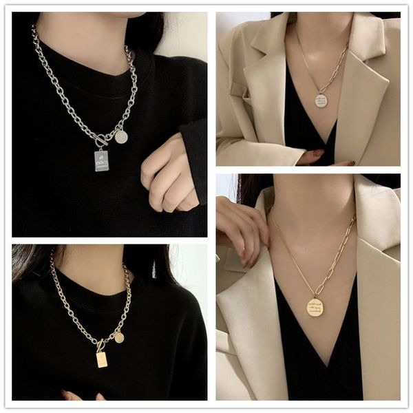 chains trendy hip-hop punk necklace female simple geometric disc square pendant wild male and clavicle chain, Silver