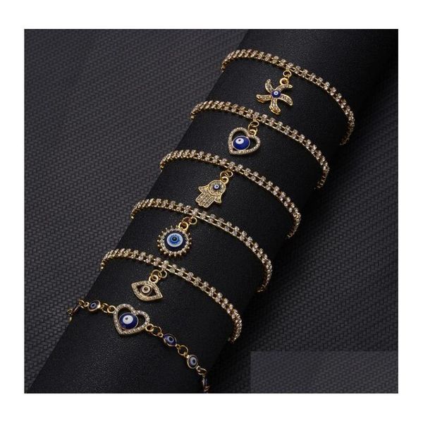 charm bracelets blue evil eye bracelets for women hand heart starfish charm crystal tennis chain bange female fashion party jewelry dhasm, Golden;silver
