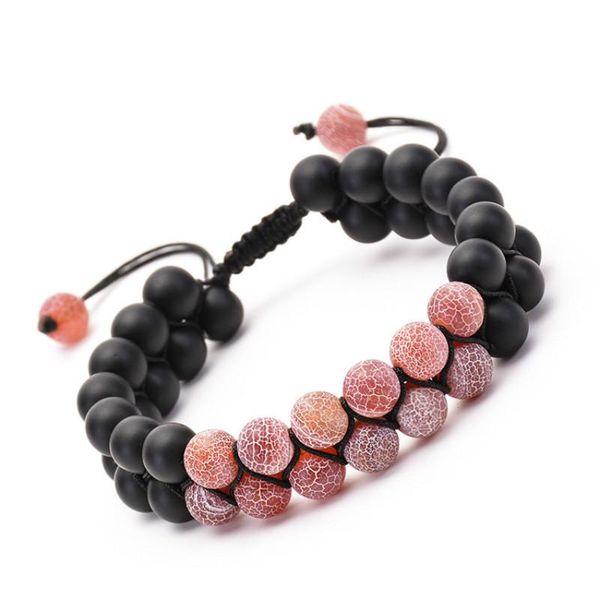 charm bracelets handmade natural stone matte double row beads bracelet adjustable layer woven strand, Golden;silver