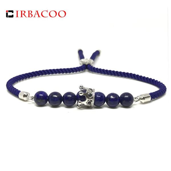 charm bracelets irbacoo 2021 fashion couple bracelet cz crown lapis stone with blue lucky cord for lovers jewelry gift, Golden;silver