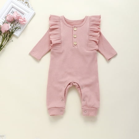 Hunpta Newborn Infant Baby Boys Girls Long Sleeve Solid Ruffles Romper Jumpsuit