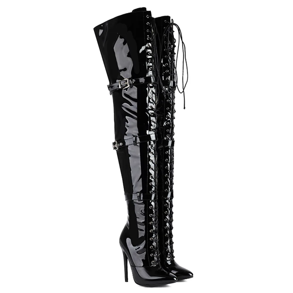 Красные, черные сапоги королевы для ночного клуба, сапоги выше колена, женские эластичные сапоги на высоком каблуке, пикантные туфли на шпильке больших размеров