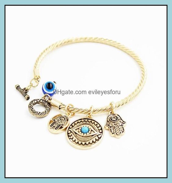 charm bracelets symbol evil eye charm bracelets for women girls turkish lucky blue eyes fatima hand bracelet fashion bangle jewelr6241303, Golden;silver