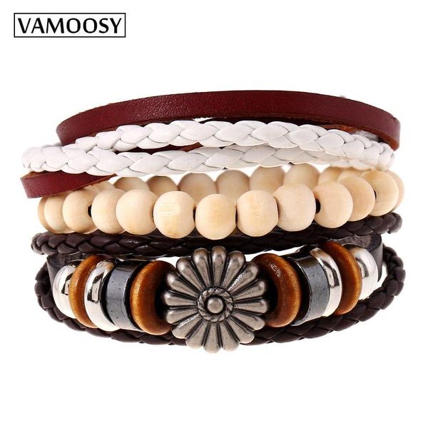 charm bracelets vamoosy 2021 natural wood beads men white ethinc meditation leather bracelet women prayer jewelry yoga, Golden;silver