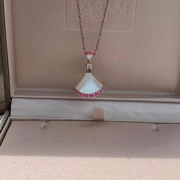 charm necklace pendant with pink color diamond fan shape in 43cm length women necklace jewelry ps50092165, Silver
