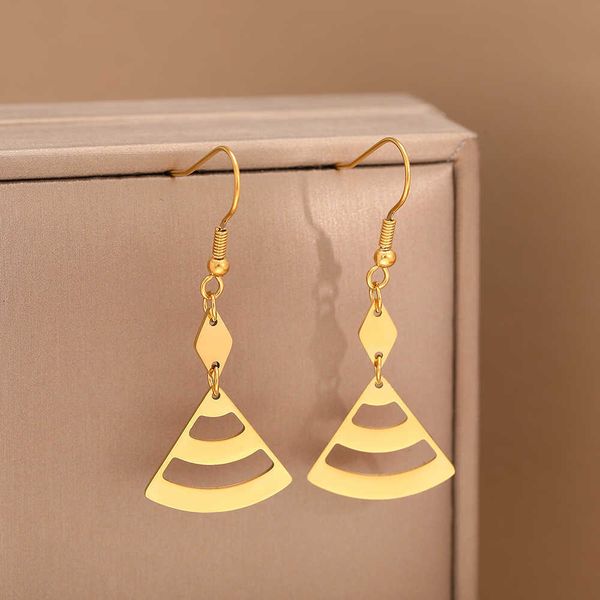 charm stainless steel earrings hollow fan shape multiple pendants trendy fine earrings for women jewelry party gifts r230804, Golden