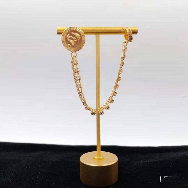 charms 2021 single beauty head ear clip chain diamond inlaid brass earrings female accessories, Golden