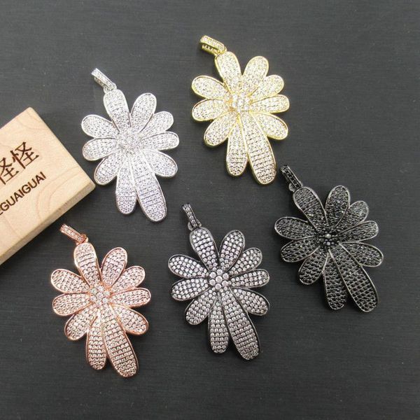 charms apdgg 29x45mm flower gold plated cubic zircon cz paved connector necklace pendant jewelry diy findings, Bronze;silver