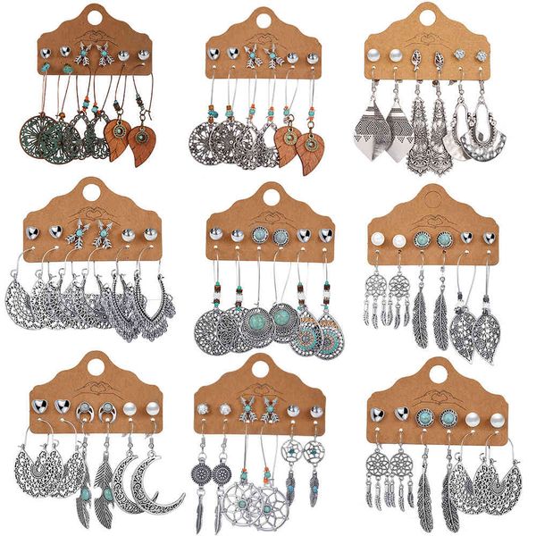 charms earrings 51599 hanzhishang love hollow out half round 6 pairs of creative leaf feather, Golden