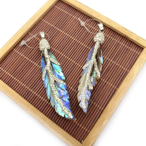 charms exquisite abalone shell pendant necklace carved leaf shaped colorful diamond jewelry strap making diy gift, Bronze;silver