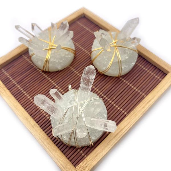 charms natural stone white crystal pendant round fashion copper winding personality men and women necklace gift accessories, Bronze;silver