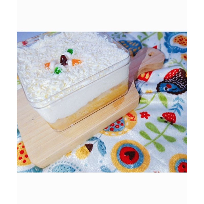 cheese cake berbahan dasar cheese cream yang yummy, perpaduan cake 2 layer, cheese cream 2 layer dan toping keju yang melimpah.