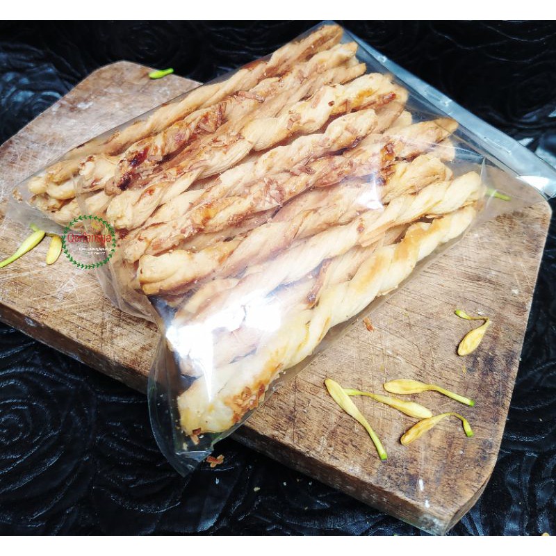olahan kulit pastry yang dipotong memanjang, kemudian dililit, beri topping keju parut dan gula pasir. rasanya unik, cobain deh