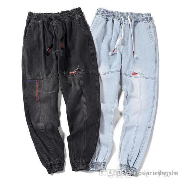chic мужчины подросток гарем джинсы весна вскользь jogger брюки сыпучие плюс размер hiphop жан pantalones, Blue