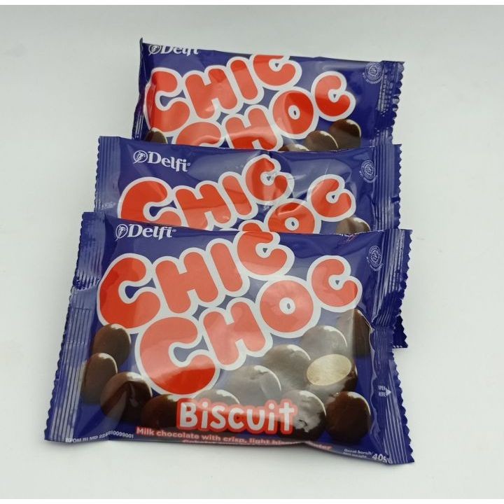 Delfi Chic Choc Biscuit adalah coklat susu yang super lembut dengan isian biskuit bulat yang juga renyah.