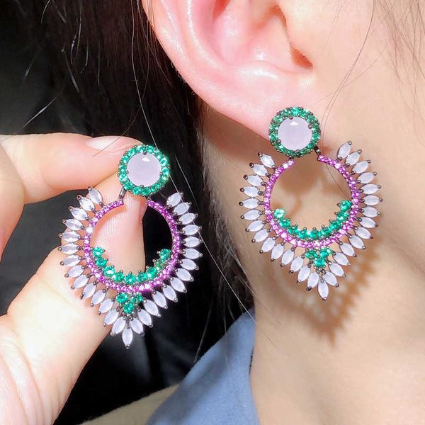 chic design light pink green cubic zirconia long dangle women engagement wedding party earrings cz667 210714, Silver