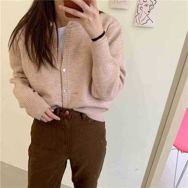 chic gentle solid spring sweaters cardigans o-neck warm long sleeves loose casual knitted feminine coat 210525, White;black